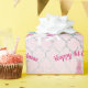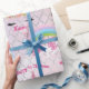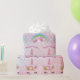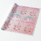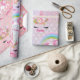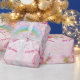 Add a greeting and name to this pretty pink girly baby's first Christmas gift wrap featuring unicorn, rainbows and sparkles!