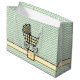 Take a stroll with this fun, stylised pram decorated with bright pink, orange, green, and blue stripes on the cover and a pattern reminiscent of wooden blocks on the body. The pastel mint and cream zigzags in the background accent the brightly coloured stroller. Customise the monogram block with the soon-to-be little one's last initial to create a truly unique gift bag for your chosen present. Be sure to check out the full Baby's Blocks Stroller collection for more great gifts and products for a baby shower or the little one in your life.