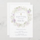 This adorable baby breath baptism invitation features a watercolor floral wreath of white baby breath and purple roses. Personalize with your information or click "Click to customize further" to edit font styles, size and colors.