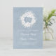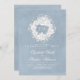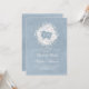 Dusty blue elegant floral engagement party invitations with the romantic baby's breath wreath monogram