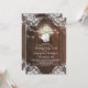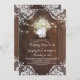 Rustic country rehearsal dinner invitation features string lights, mason jar, baby's breath flowers, wood, and lace