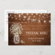 Baby's Breath Mason Jar Lights Rustic Thank You Postcard.