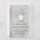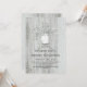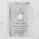 Rustic and elegant white wood engagement party invitation features string lights, mason jar with tag and initials, and baby's breath flowers.