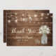 Baby's Breath Mason Jar String Lights Wedding Thank You Card.