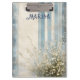 A spray of white baby’s breath on faded blue and white stripes creates a beautiful clipboard. A vintage look that's always in style.