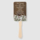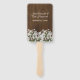 Rustic wedding themed program fan done in a dark wood look with graphics of white baby's breath flowers, along the bottom. Personalise the white text to read what you want.