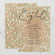 Lovely number table 8 sign seating chart with delicate baby's breath watercolor flowers and elegant script typography.