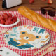 This adorable illustration captures the joy and innocence of a baby celebration. A cheerful bear, wearing only a diaper, sits happily in a bath tub, surrounded by festive decorations, animal friends, and sweet treats. The bright colours and playful characters create a whimsical and heartwarming scene perfect for welcoming a new little one.