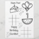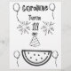 First Birthday Colouring Pages, Front and Back.