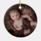 This sweet baby's first Christmas ornament features a monogram crest with a baby carriage in a neutral colour scheme. You can personalise with baby's name and add a portrait to the back.