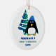 Baby Boy's First Christmas. Funny Little Penguin and Christmas Tree design Christmas Gift Ornaments for baby boy with personalised name and year. Matching cards and gifts with different family members available in the Christmas & New Year Category of our store.