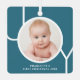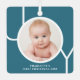 This stylish keepsake Baby's First Christmas Photo Ornament is decorated with the word JOY in white typography on a teal blue background.