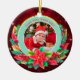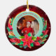 Celebrate a milestone with this stunning personalized photo Christmas ornament! Featuring a gorgeous teal background with sparkling gold accents and a festive wreath of poinsettias, holly, and candy canes, this ceramic ornament is the perfect way to display a treasured photo of your baby in their Santa outfit. Personalize it with the year ("20xx") to commemorate your little one's very First Christmas. A beautiful keepsake for new parents or a thoughtful gift for grandparents.