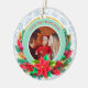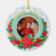 Celebrate a milestone with this stunning personalized photo Christmas ornament! Featuring a gorgeous teal background with sparkling gold accents and a festive wreath of poinsettias, holly, and candy canes, this ceramic ornament is the perfect way to display a treasured photo of your baby in their Santa outfit. Personalize it with the year ("20xx") to commemorate your little one's very First Christmas. A beautiful keepsake for new parents or a thoughtful gift for grandparents.