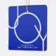 This stylish keepsake Baby's First Christmas Photo Ornament is decorated with the word JOY in white typography on a peacock blue background.