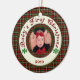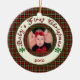 Baby's First Christmas personalised photo ornament in red and green holiday plaid. Perfect Holiday gift or stocking stuffer for family and friends! Customise it with your child's name and date on back.