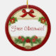 A beautiful personalised Baby's First Christmas "your photo" holiday art keepsake ornament! This lovely double sided ceramic ornament is a wonderful way to preserve your baby's first Christmas holiday memories and display them year after year as holiday heirloom decor. This design features lovely green garland with red and gold ornaments and a poinsettia flower on the bottom and a red and gold trim digital art bow on top. Lovely golden trips and frame around the image area, and year plaque on the bottom. The rim of the ornament is red snowflake pattern. Simply upload your photo to the front to replace the sample image in the centre. (Please Note: The higher the quality of your uploaded photo, the better it will display/print on the plate) Personalise the ornament on top with your baby's name and add the year on the bottom for a finishing touch! To edit the font style, size or colour, simply click on "customise" under the photo image on this page and those options will also be made available to you! This is a wonderful family keepsake to add to your collection, or as a meaningful gift for a friend, or family member will treasure! For more personalised holiday ornaments, home decor, and keepsakes please visit our shop!
