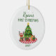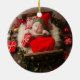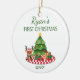 Baby's first Christmas ornament features a cute reindeer sitting by a bright Christmas tree with presents all around, personalised and unique to you making the perfect gift. Personalise with baby's name and year. Upload a photo to the back to complete your design. This keepsake ornament will be a wonderful addition to your Christmas tree.
