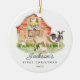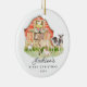 Simply perfect Baby's First Christmas ornament featuring a cute barnyard friends scene. Easy to personalise with your info.
