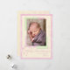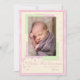 Show off a portrait of your adorable baby newborn girl. Cream coloured Christmas card with pink edging. Picture is framed by cutee pink and pale green boxes. Hearts and snowflakes float under the picture. Text read's "Baby's First Christmas" and can be modified. Personalise the text with your baby's name and the year. Photography © Storytree Studios, Stanford, CA