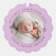 Modern keepsake baby's first Christmas personalize paper ornament in curve letters and line art of snowflakes overlaying a dusty blush pink with your favorite photo.