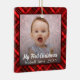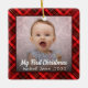 Baby's First Christmas Newborn Photo red plaid Ceramic Ornament