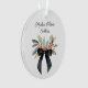 Baby's First Christmas Newborn Watercolor Script Ornament: Celebrate the joy of your little one's first holiday season with this exquisite ornament, designed to capture the magic of new beginnings. The front features your baby's name in elegant script, complemented by a charming black ribbon bow illustration, surrounded by delicate watercolor leaves and holly berries. This modern yet rustic design is a beautiful addition to any Christmas tree.