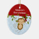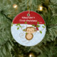 Baby's First Christmas Ornament features an adorable Santa monkey wearing a Santa hat swinging on a jungle set on a blue & white polka dotted background! Available in a heart shape in our shop! Personalise with your baby information and date and you're all set to go! Wonderful dated keepsake gift for your baby's 1st christmas.