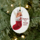 babys first christmas ornament - customisable. This sweet christmas ornament celebrates baby's first holiday season. Custom it with babys name and the year of the gift for that special present to be treasured forever. This tree decoration is so cute as it is or the colour of the background can be changed to make it even more personalised. This image of a baby angel in a xmas stocking is just right for a new parent that any mum or dad will be thrilled to receive.