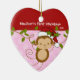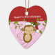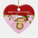 Baby's First Christmas Ornament features an adorable Santa monkey wearing a Santa hat swinging on a jungle set on a pink & white polka dotted background! Available in a heart shape in our shop! Personalise with your baby information and date and you're all set to go! Wonderful dated keepsake gift for your baby's 1st christmas.