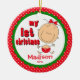 Baby's First Christmas Ornament features a cute stick figure baby girl wearing a red diaper set on a red & green polka dotted background! Personalise with your baby information and date and you're all set to go! Wonderful dated keepsake gift for your baby's 1st christmas.