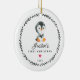 Simply perfect Baby's First Christmas ornament featuring a sweet little penguin with modern hand drawn wreath and a tiny heart.
