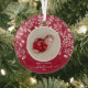 Round glass Christmas tree ornament features your baby's photo surrounded with white leaves, berries and dots on a cranberry background. TIP: Upload a high resolution, photo that features the baby in the middle. Ornaments make memorable gifts for family and friends or create for yourself. MORE colors in our store.