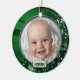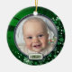 Adorable round ceramic Baby's First Christmas custom photo frame ornament. The front has a place for your own uploaded photo and the year, while the back is ready for you to personalise with baby's name and year as well. Makes the perfect gift for new parents grandparents and will be a treasured keepsake year after year.