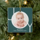 This stylish Baby's First Christmas Photo Ornament is decorated with the word JOY in white on a terracotta background.