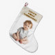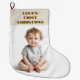 "Make your baby’s first Christmas truly unforgettable with this custom photo stocking. Featuring your little one’s picture and name, it’s a sweet and meaningful way to capture the magic of their earliest holiday memories. A precious keepsake to display year after year. Crafted to be both charming and durable, this stocking is perfect for hanging above the fireplace, gifting to new parents, or saving as a treasured holiday keepsake."