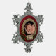 Ornate embossed gold frame with sprays of pine cones, ribbons and Christmas greens with aged brass plate for customisation. Substitute placeholder image with your own photo to create a unique and treasured family heirloom.