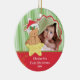 Cute Photo Christmas Ornament featuring an adorable baby deer sitting on a star set on a green stripe background, just add YOUR PHOTO! Perfect for first christmas & second christmas. A Wonder Christmas gift sure to be treasured for many years to come.