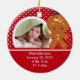 Cute Photo Christmas Ornament featuring an adorable Gingerbread Man Girl set on a red polka dotted snowflake background, just add YOUR PHOTO! Perfect for first christmas & second christmas. A Wonder Christmas gift sure to be treasured for many years to come.