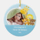 Cute Photo Christmas Ornament featuring an adorable giraffe and jungle animal friends set on a blue background, just add YOUR PHOTO! Perfect for first christmas & second christmas. A Wonder Christmas gift sure to be treasured for many years to come.