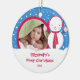 Cute Photo Christmas Ornament featuring an adorable Snowman set on a snow filled background, just add YOUR PHOTO! Perfect for first christmas & second christmas. A Wonder Christmas gift sure to be treasured for many years to come. ©zenware graphics