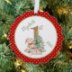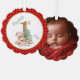 Celebrate a special milestone with this charming "1st Christmas" photo ornament. Featuring an adorable teddy bear in a Santa hat beside a beautifully decorated tree, it's the perfect finishing touch for your little one's first festive season. The rich red and gold polka dot border adds a classic, joyful touch to any holiday decor.