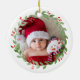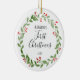 This design features a watercolor Christmas wreath surrounding your baby's name, "First Christmas," and the year in whimsical black printing and handwriting fonts. Customise the reverse side with a favourite photo of your baby, encircled by the same wreath.
