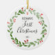 Baby's First Christmas Photo Wreath Black Text Ceramic Tree Decoration