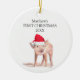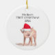 Baby's first Christmas, piglet, pig animal, boy, forest, watercolor, botanical, photo Christmas ornament.