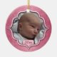 Celebrate Baby's First Christmas with a precious keepsake photo ornament, personalised with your baby's picture, the year, her name, and designed in pink with snowflakes.
