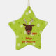 Cute Baby's First Christmas ornament featuring an adorable reindeer on a green polka dot background. Ornament can be customised with child's first name. Replace the back image with baby's picture or remove if one sided printing is desired instead.