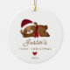 Simply perfect 2 Sided Photo Baby's First Christmas ornament featuring a sweet sleeping teddy bear wearing a scarf and Santa hat. Easy to personalise with your name & year.