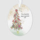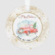 The back is a red pickup truck hauling a tree with the message Merry Christmas. There is a bit of faux gold glitter magical sparkle on this ornament :)