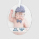 This Christmas tree decoration is fully customisable with the photo of your newborn baby and your own text.